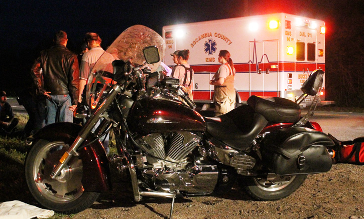 The Florida Highway Patrol said Bruce Winsor of Pensacola and the pickup that fled the scene were both traveling northbound on Highway 97 near Gibson Road about 7:30 p.m. Winsor was traveling two to three car lengths behind the pickup and one of the witnesses when he changed lanes and attempted to pass the vehicles in front of him. At that time, the pickup slowed and began to turn onto Gibson Road. The front of Winsor’s Honda 1300 motorcycle struck the rear quarter panel of the pickup.