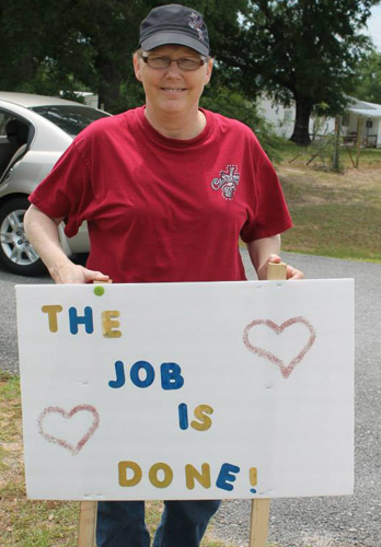 The signs were lining the route home for Sandra Morris of McDavid, diagnosed with cancer on October 4, 2012. On Wednesday, she completed her final round of chemo. Friends and relatives, part of “Team Sandra” planned the special welcome home.