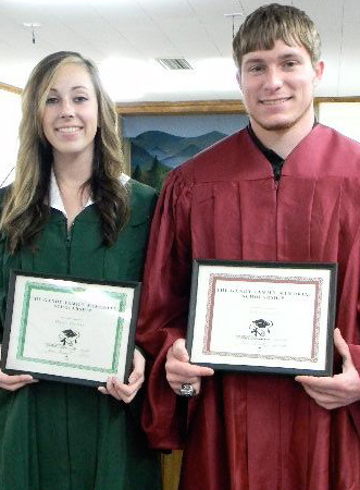 The Gandy Memorial Scholarship, established by the Gandy Family at Poplar Dell Baptist Church in Byrneville, recently honored two local seniors with $500 scholarships. Both students were selected based on their involvement in church and community activities and grade point averages. The Gandy Memorial Scholarship was established several years ago in memory of J.L. Gandy, Louise Gandy, Solon Gandy and Elmira Gandy Crapps who were longtime and active members of Poplar Dell.