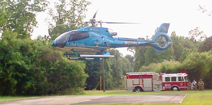 Pictured: A toddler was airlifted from the Escambia County EMS Post in Century to Sacred Heart Hospital after a near-drowning incident in Byrneville Sunday afternoon. NorthEscambia.com photo, click to enlarge.