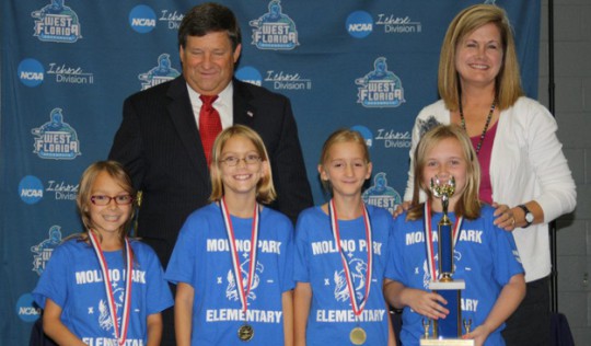 Almost 600 third, fourth and fifth grade students from almost every Escambia County elementary school took part in the annual Sunshine Math Competition at the University of West Florida Field House.