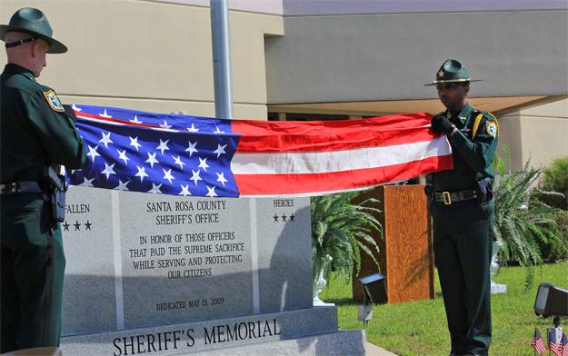 Wednesday, the Santa Rosa County Sheriff’s Office held a Law Enforcement Memorial Service to honor fallen officers from across the state. The ceremony included a 21-gun salute, an Honor Guard flag presentation and a bagpipe performance of Amazing Grace.