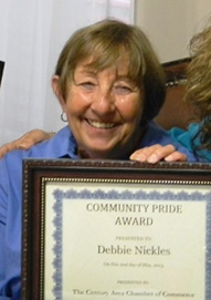The Century Area Chamber of Commerce has presented their May 2013 Community Pride Award to town consultant Debbie Nickles. Nickles has played a key role in Century obtaining several grants, including grants that allowed for housing in the town to be rehabilitated or rebuilt. Courtesy photos for NorthEscambia.com, click to enlarge.