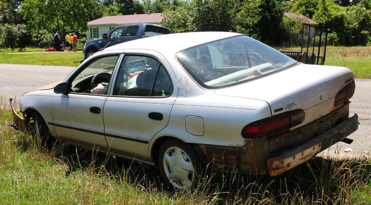 The accident happened on West Highway 4 just east of North Highway 99 about 11 a.m. The elderly female driver of an eastbound Geo Prizm apparently lost control, ran off the roadway and struck a couple of culverts before sliding across the roadway.