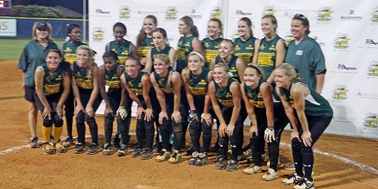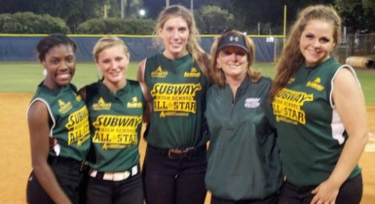 Pictured top: West All-Star Coach Amy Holland (second from right) with Northiew All-Star players (L-R) Shaquanna Jones, Ariel Holland, Misty Doran and Morgan Payne. Pictured below: The 2013 Subway West All-Star Softball team. Submitted photos for NorthEscambia.com, click to enlarge.