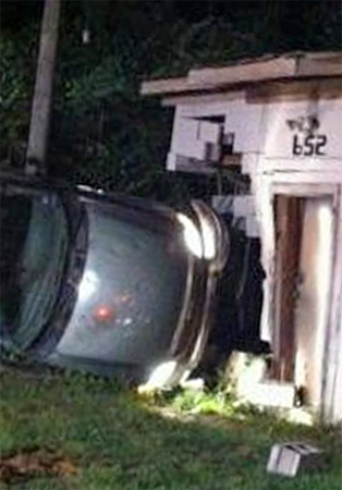 The accident happened about 12:55 a.m. on Jacks Branch Road just north of Annie Bell Drive. The driver apparently lost control of his pickup truck, ran off the roadway where the vehicle overturned onto its side and collided with Al’s Small Engine Repair at 652 Jacks Branch Road.