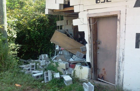 Pictured above and inset: A driver collided with a business in Cantonment early Saturday morning. Pictured below: One entire corner of the building was destroyed. Reader submitted photos for NorthEscambia.com, click to enlarge.