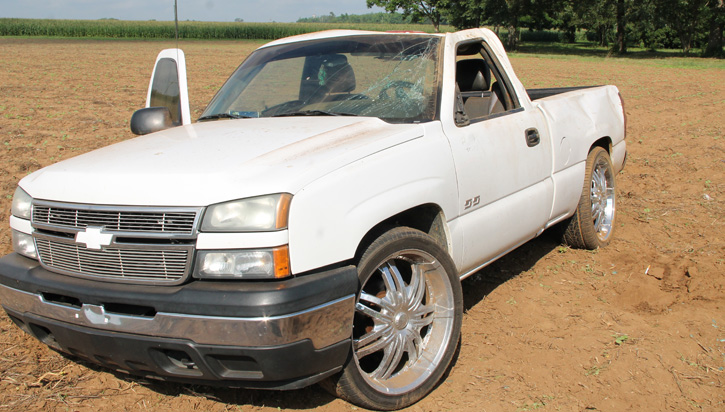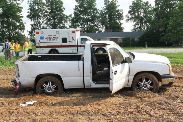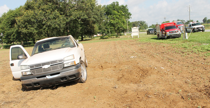The accident happened about 8:35 a.m. on Highway 97 just south of Arthur Brown Road. The driver of a Chevrolet pickup truck was northbound on Highway when the driver said he fell asleep as he was returning home from a night shift. He ran off the roadway, clipped a sign post, slid across both lanes of Highway 97 and overturned in a field. The truck came to rest upright in the field.