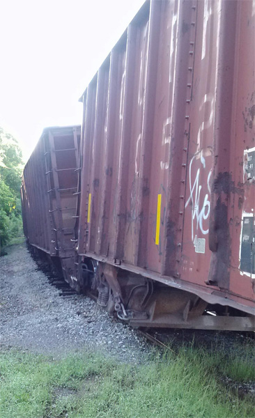 Pictured top: A low speed train derailment Wednesday morning at Louis Street in Cantonment. NorthEscambia.com photo by Kristi Smith, click to enlarge.