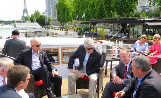 Pictured: (L-R) Florida Governor Rick Scott, Mississippi Governor Phil Bryant and Alabama Governor Robert Bentley at the Aerospace Alliance meeting in Paris on Sunday. Courtesy photo for NorthEscambia.com, click to enlarge.
