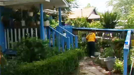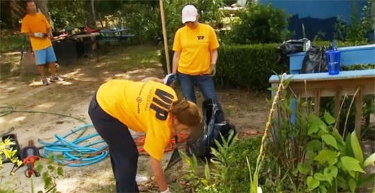 About a dozen IP employees braved the afternoon heat by cleaning up the yard of 80-year old Maggie McNeal. The volunteers raked, trimmed and cleaned out McNeal’s yard.