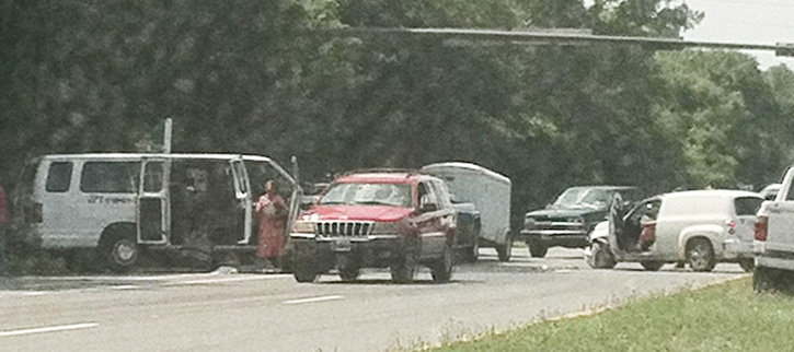 Pictured: A two vehicle crash involving a church van at Morris Avenue and Highway 29 in Cantonment Friday afternoon. Reader submitted photo by Ramona Preston, click to enlarge.