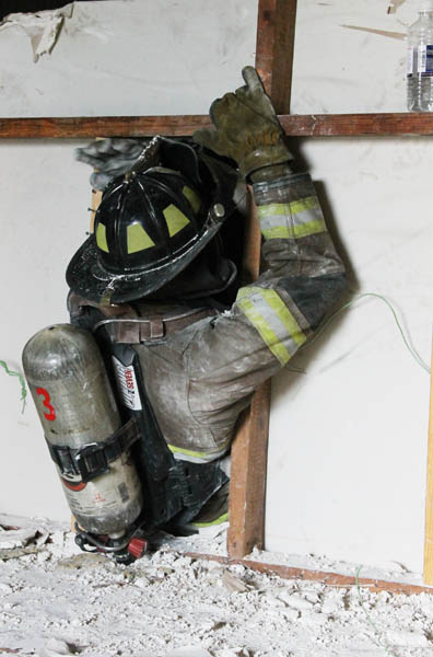 Firefighters learned how to kick their way through a wall and bail out of a burning building if the need were to arise. They also learned how to remove an injured firefighter from a blaze and communications techniques.