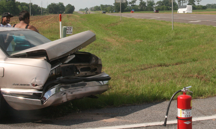 The accident happened just before 9 a.m. at the intersection Highway 29 and Highway 97. The front of a tour bus operated by a Selma, AL, company apparently collided with the rear of a Buck Park Avenue. The number of passengers on the bus was not immediately available.