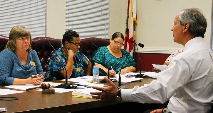 Pictured top: Century Town Council members (L-R) Ann Brooks, Sandra McMurray Jackson, Jacke Johnston and town attorney Matt Dannheiser Monday night. NorthEscambia.com photo, click to enlarge.
