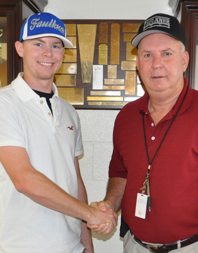 Tate High School 2013 graduate Jared Hoffman has signed a scholarship to play golf at Faulkner University in Montgomery. Hoffman is pictured with Athletic Director David Venettozzi. Submitted photo for NorthEscambia.com, click to enlarge.