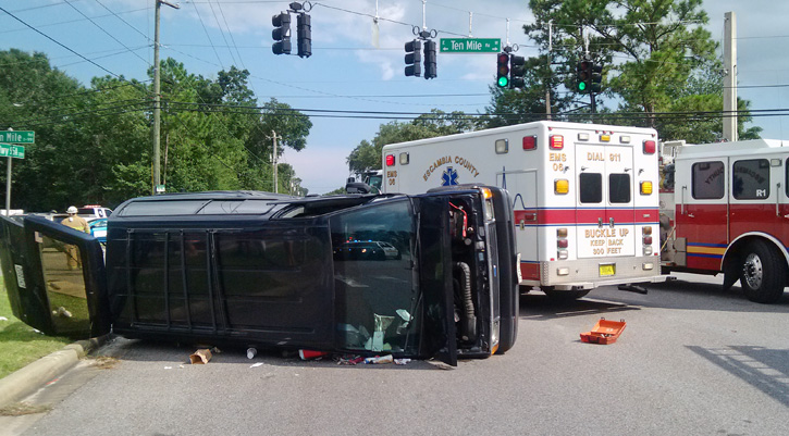 The injured driver was trapped briefly in their overturned vehicle before being extricated by firefighters. The person was transported to Sacred Heart Hospital by Escambia County EMS with non-life threatening injuries. The driver of the second vehicle was not injured in the 3:55 p.m. crash.