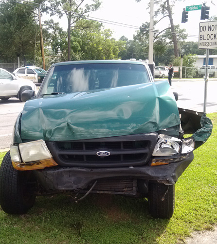 Pictured: One person was injured in this two vehicle crash Sunday afternoon at 10 Mile Road and Palafox Street. NorthEscambia.com photos by Kristi Smith, click to enlarge.