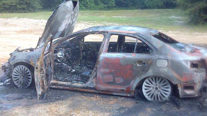Pictured: A stolen BMW was found burnt out at Fischer’s Landing in Century early Saturday morning. Photos for NorthEscambia.com, click to enlarge.