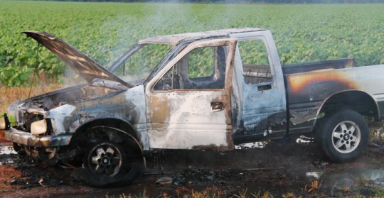 Fire destroyed an Isuzu pickup truck Thursday evening in Walnut Hill. The truck caught fire alongside Gobbler Road east of Highway 97 about 7:20 p.m.