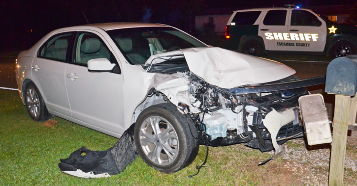 Only minor injuries were reported in a two vehicle accident about 8:50 p.m. Thursday on Muscogee Road near Highway 97. NorthEscambia.com photos by Kristi Smith, click to enlarge.