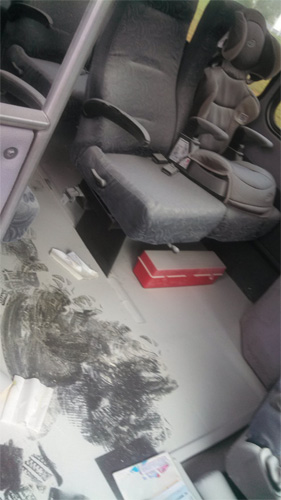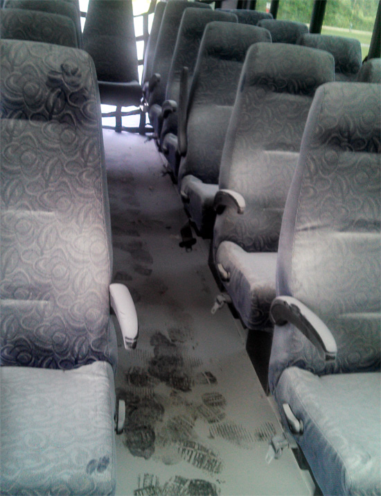 Pictured: Someone unloaded an entire fire extinguisher inside a bus belonging to the Gonzalez United Methodist Church. Submitted photos for NorthEscambia.com, click to enlarge.
