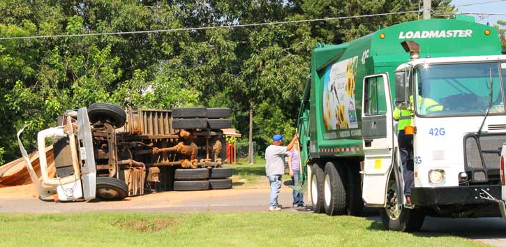 ECUA sanatation truck 1, dump truck 0. Just glad every one is okay. Remember, no reason to cry over spilled dirt…..