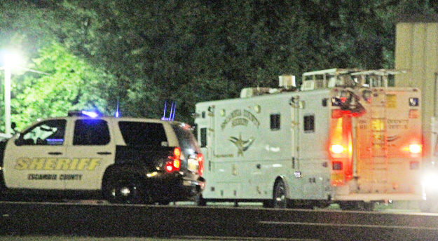 Pictured top: An Escambia County SWAT vehicle at a staging area set up Saturday night at the McDavid Volunteer Fire Department. Pictured below: The Sheriff’s Office command center on scene with an Escambia County EMS ambulance nearby. Pictured bottom: The SWAT staging area at the McDavid VFD. NorthEscambia.com exclusive photos, click to enlarge.