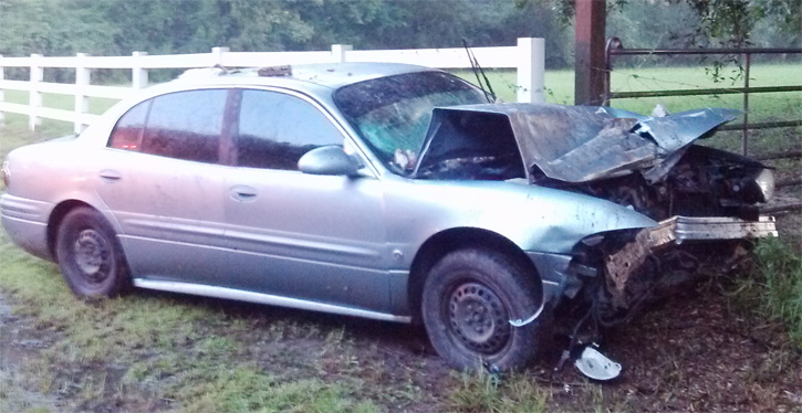 One person was injured in a single vehicle crash Thursday on south County Road 97 near West Kingsfield Road. The driver apparently lost control and hit a brick mailbox, before drifting back across the road into a fence post.