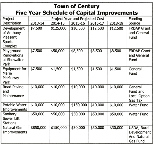 The Town of Century has approved a five-year schedule of capital improvements totaling over $1.8 million.