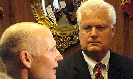 Pictured: Secretary of State Ken Detzner (right) listens to Gov. Rick Scott speak. NorthEscambia.com file photo, click to enlarge.