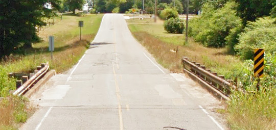 The bridge is located just west of the Walnut Hill Baptist Church.