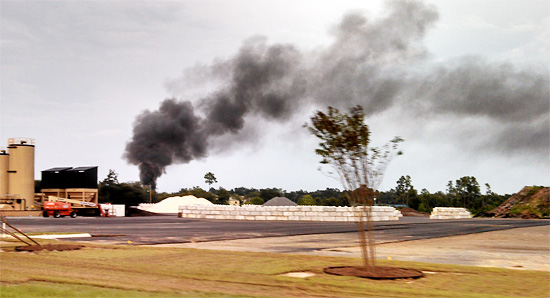 Pictured: Multiple dump trucks were destroyed by fire Sunday evening at Roads, Inc. on Stone Boulevard in Cantonment. Reader submitted photos for NorthEscambia.com, click to enlarge.