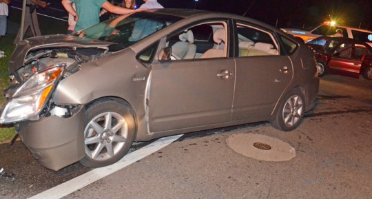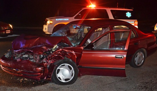 Pictured: One person was injured in this two vehicle accident about 8:30 Sunday night at the intersection of South Highway 97 and Muscogee Road in Cantonment. NorthEscambia.com photos by Kristi Smith, click to enlarge.