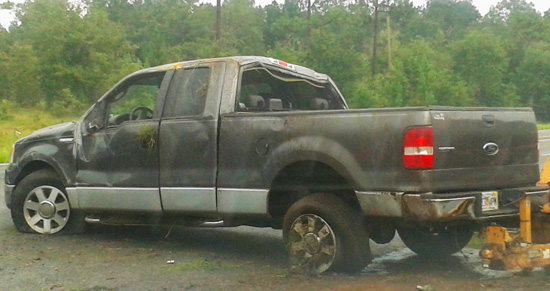 Pictured: One person was critically injured in a two vehicle crash Sunday afternoon on Highway 31 in Flomaton. Submitted photos by Robbie Lynn Burkett, click to enlarge.