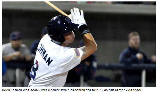 The Wahoos blew the game open in the seventh inning, batting for the cycle as a team. Pensacola scored six runs on seven hits, including four doubles, a triple, and homer. Travis Mattair drove home two with a triple, Brandon Short and Ryan LaMarre brought home a run with doubles and Lohman capped things off with a two-run blast, his seventh of the season.