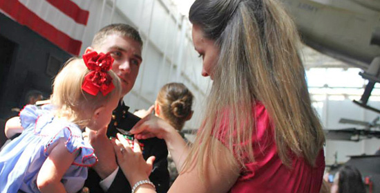 Pictured top: Casey Wilcoxon’s wife Kelley pins his new wings as daughter Kali looks on at Fort Rucker. Submitted photo for NorthEscambia.com, click to enlarge.