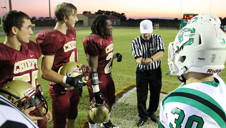 Pictured top: Last Friday night’s coin toss as Northview hosted Choctawhatchee. The Chiefs begin district play this Friday night as they travel to Jay. NorthEscambia.com photo, click to enlarge.