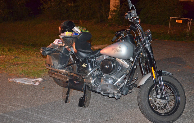 One person was injured in a single motorcycle accident early Sunday morning near the intersection of County Road 97 and Kingsfield Road. The motorcyclist lost control and ejected onto the roadway in the crash, which was reported at 12:05 a.m. The victim was transported to an area hospital by ambulance for treatment; their Harley Davidson was not seriously damaged. Further details have not been released by the Florida Highway Patrol. NorthEscambia.com photos by Kristi Smith, click to enlarge.