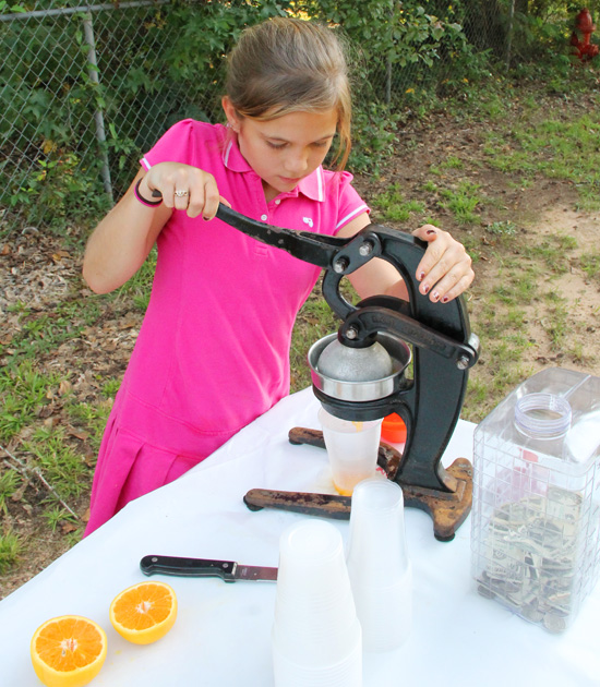 Her idea? A fresh orange juice stand along East Highway 4 in Bratt, under the shade trees in front of her house. The 10-year old used her own money to purchase the oranges and supplies for her little business venture and borrowed an old fashioned juicer from a friend of her mom.