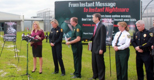 I unveiled a statewide initiative intended to raise awareness about human trafficking and to help parents protect their children from online sex traffickers. The initiative, “From Instant Message to Instant Nightmare,” debuts on billboards, bus shelters, and mall displays throughout Florida.