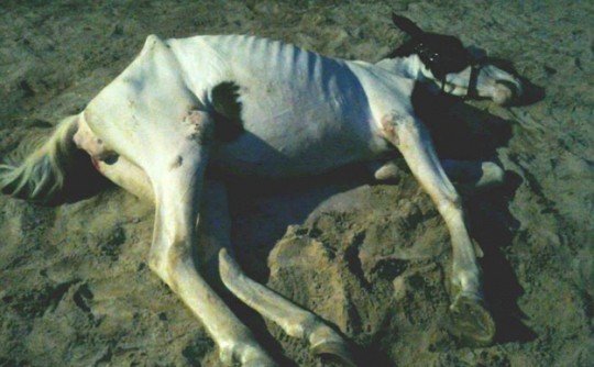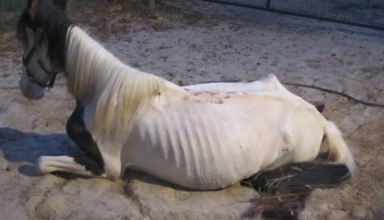 This is awful! Inhumane!There is no excuse for this to happen to any animal.Even a bullet to the head would be less suffering!The owner needs to be held accountable and procecuted to the fullest plus another 10 tacked on!If you cant feed them you don’t need them.More and more common it seems.Shame on you there is a special place for you!