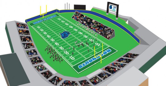 Pictured: A conceptual rendering of UWF football at the Maritime Park Stadium.