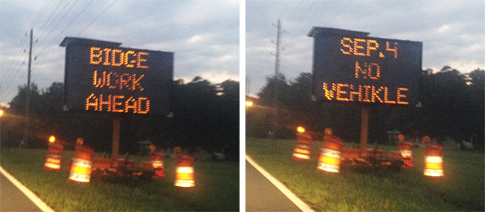No, it was TWO signs blinking three messages. The words were spelled in the same incorrect manner on BOTH signs.