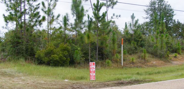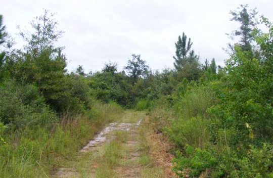 Pictured top: A location map for about 800 acres that was rezoned by a vote of the Escambia County Commission Thursday night. Pictured east: Looking north into the parcel from Well Line Road. Pictured below: Looking east into the parcel from Jacks Branch Road. Courtesy images for NorthEscambia.com, click to enlarge.