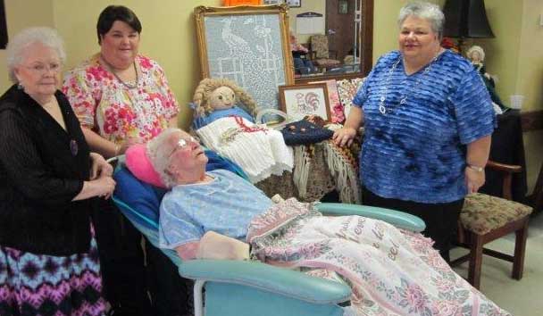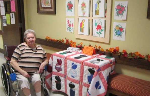 Some beautiful things displayed. I think this is great that they get to show off their talents. I wonder if they thought about letting them make things to sell I may be a little prejudice, but this nursing home is so nice and always have something going on for the residents.