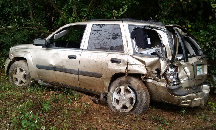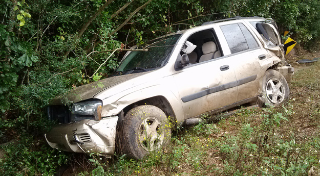 The driver of a Chevrolet Trailblazer apparently ran off the road and overturned, with the vehicle coming to rest on all four wheels. The victim’s injuries were not considered to be life threatening.