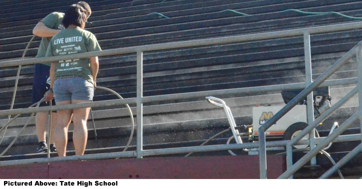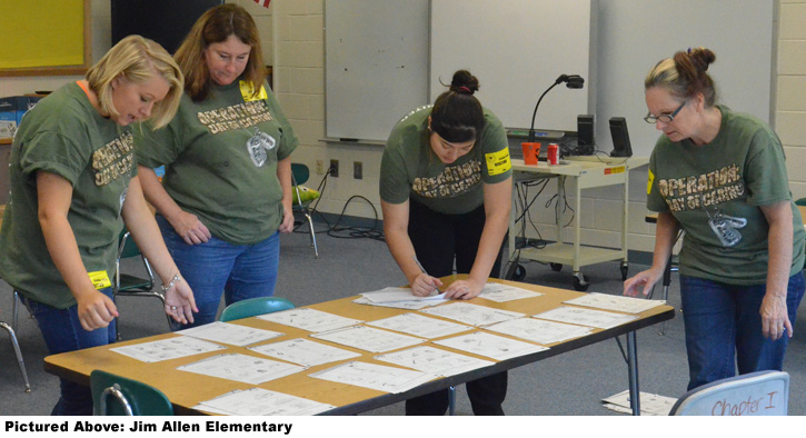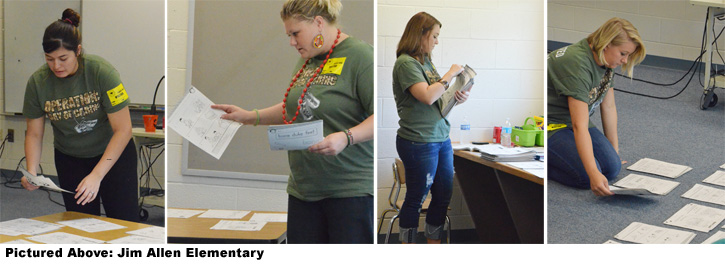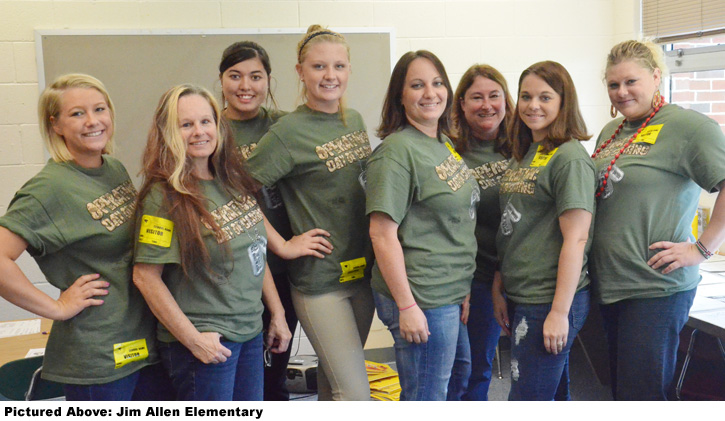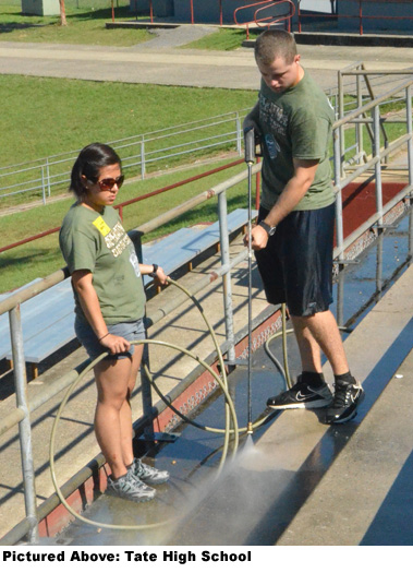 In the North Escambia area, a volunteer group from the University of West Florida helped with landscaping and pressure washing at Tate High School. At Jim Allen Elementary School, volunteers from retailer T.J. Maxx worked to organize workbook pages.
