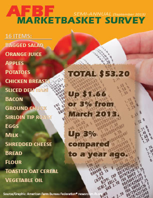 Shoppers are paying slightly more for food items at the grocery store compared to the first half of 2013. Higher retail prices for meat items such as boneless chicken breasts and dairy products, among other foods, resulted in a slight increase in the American Farm Bureau Federation’s latest Semi-Annual Marketbasket Survey.
