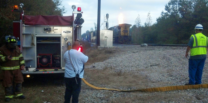 CSX officials were on scene with firefighters dispatched from Flomaton, Friendship, McCall, Barnett Crossroads, Century, McDavid and other departments. Preliminary information indicated there was abut 3,000 gallons of diesel fuel on the locomotive, and CSX devised a plan to turn off the fuel supply and extinguish the fire.